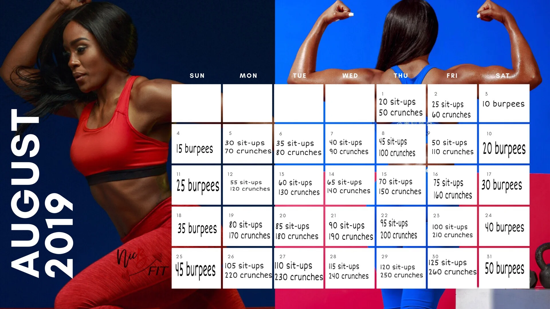 Here’s a day of my ab challenge that I posted in November; the rest can be found on my IG page @nicb.fit *you’ll have to scroll down a bit :)*